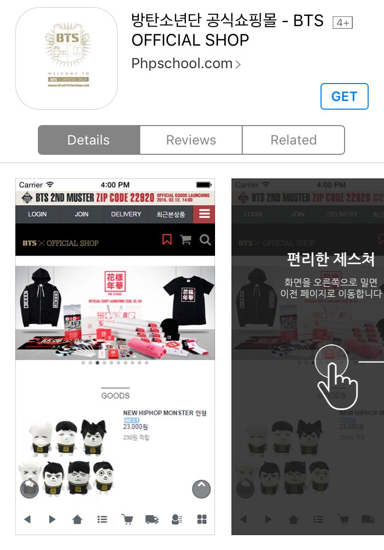 O aplicativo é da loja oficial do bts ( oficial shop no nome deveria indicar isso certo ?) lá você consegue ter acessso a todos os itens oficiais do grupo e compra-los também, bem eu mais namoro do que compro mas é bom para ter uma noção de todos os produtos oficias dos meninos e se motivar a juntar grana para adiquirir os seus queridinhos. Disponível para IOS e Android.
