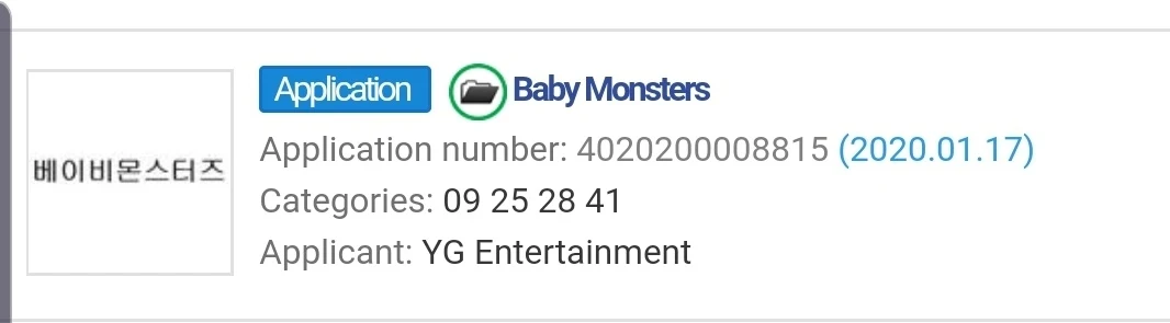 No momento, o nome mais provável para o novo grupo feminino da YG Entertainment é Baby Monsters . Em janeiro, fãs de olhos de águia perceberam que a empresa havia registrado uma marca registrada para o nome. Verificar os pedidos de marcas registradas também foi como os fãs da JYP Entertainment descobriram o nome da ITZY em dezembro de 2018.