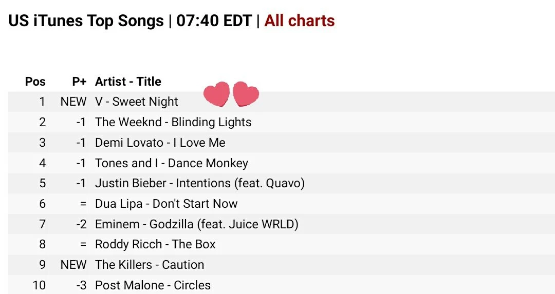 "Sweet Night" do BTS V para "OST da classe Itaewon" estréia em primeiro lugar no iTunes dos EUA